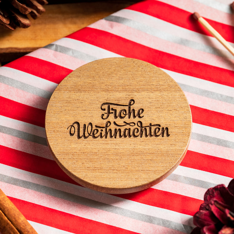Frohe Weihnachten - Couvercle De Noël En Bois Naturel Pour Bougie De 30cl
