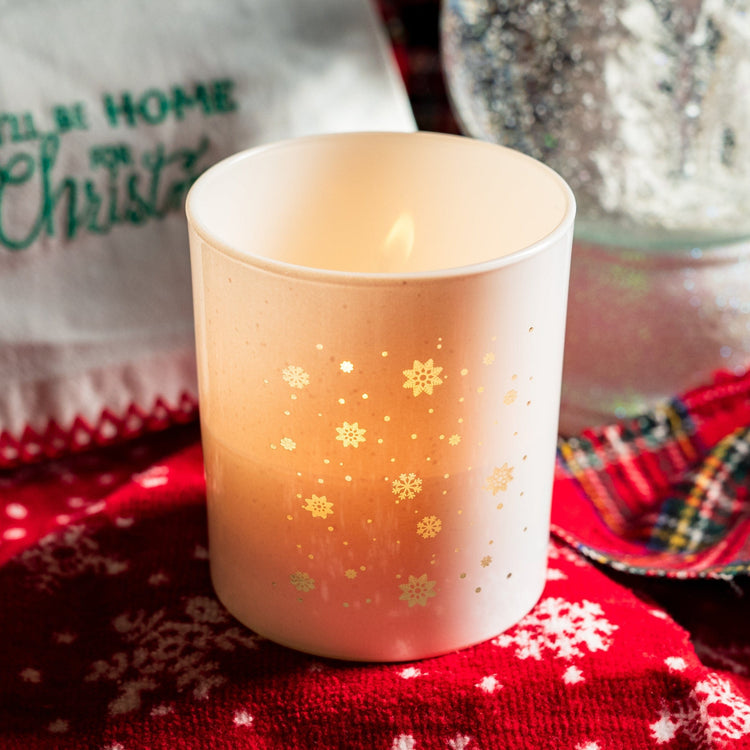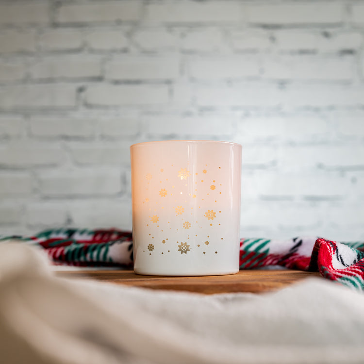 Cette petite merveille est pot à bougie blanc brillant de 30 cl avec d'élégants flocons de neige gravés, il vous fera voyager à coup sûr. Il est comme une boule de neige qui tourbillonne dans la pièce !